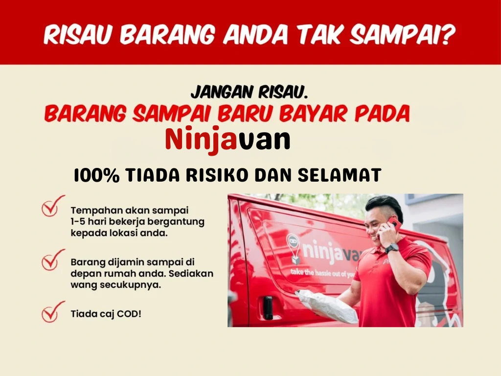 ✔ Penghantaran COD melalui Ninjavan ✔ Bayar kepada posmen waktu terima parcel/barang ✔ Dijangka sampai sekitar 1-3 hari